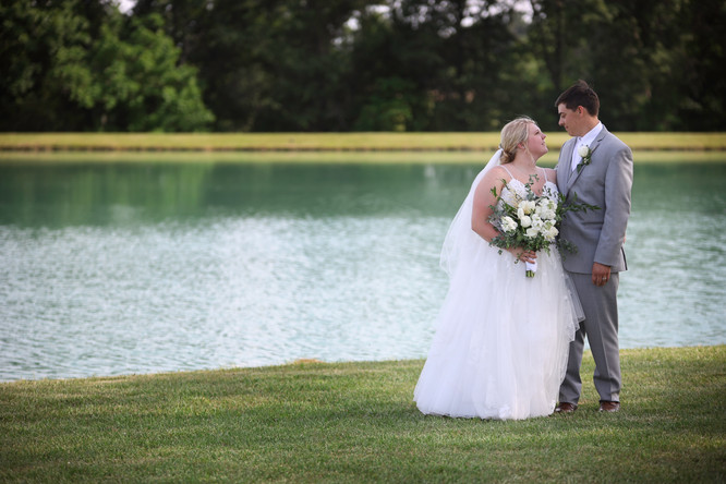 The venue is Josh's family lake located in High Hill, MO. The lake is beautiful! It was very quite, calm, and relaxing. A vibrant blue/green cast in the lake was a nice touch. The family sure worked hard in preparing for the big day and it did not go unnoticed! What better place to get married than a place that has true meaning to you! All the tiny details they did to bring the day together was well thought out. They even hand made all the fresh flowers for boutonnieres and bouquets.