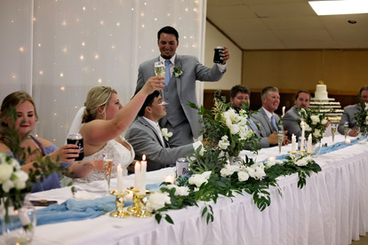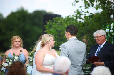 A beautiful lake side ceremony. Sun was shinning with a small breeze. A few clouds to help shade from the heat. Turned out to be a lovely day with a romantic outside setting. Could not be happier for Josh & Payton. The two love birds sure looked sharp!