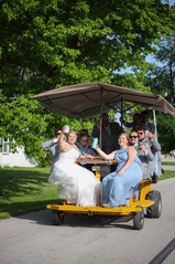 Had some fun with the wedding party out cruising the town on a picnic table! Yes you read that right. But is it not the such a neat little cart to ride around on? We made sure to make a pit stop by Payton's barbershop where she works at. Love the old time vibes.