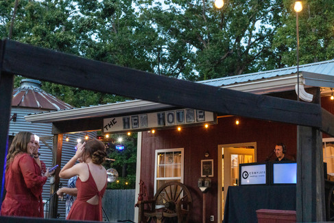 Hen House: Brides and bridesmaids are provided with a spacious cabin all of their own to get ready for the wedding. The cottage includes large mirrors, heating/cooling, private restroom, table with chairs, and antique claw foot bathtub. The hen house has a nice covered front porch which makes a great spot for a band or DJ. Seating and a lovely wood stamped concert makes a great dance floor next to the porch.